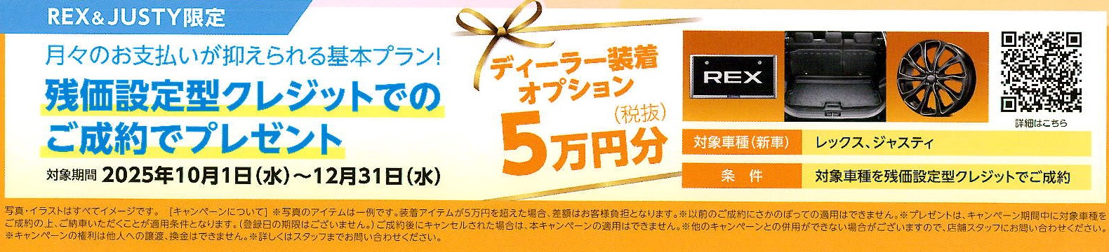 REX&JUSTYを残価設定型クレジットでのご成約で