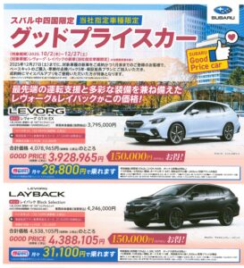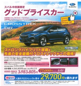 スバル中四国限定のグッドプライスカーもご用意しております。