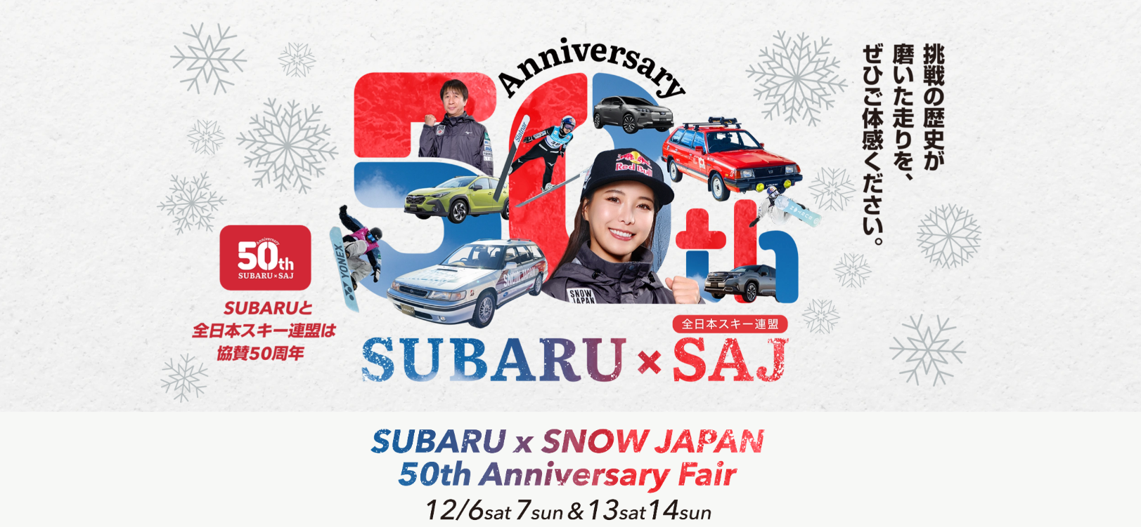 さて、12月最初のイベントは、全日本スキー連盟とSUBARUの協賛50周年記念コラボです。