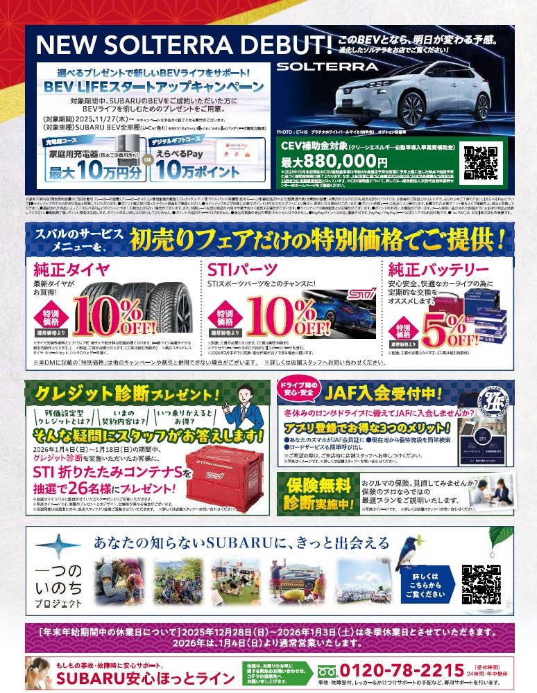 ・スバル純正バッテリーやスバル用品・STIパーツをお得に購入できるチャンス☆