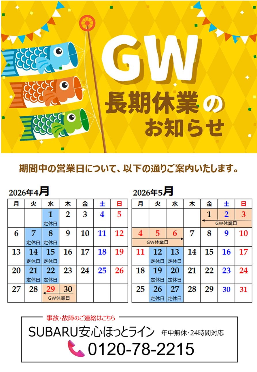 GW中はぜひSUBARU車でのお出かけをお楽しみくださいませ✨