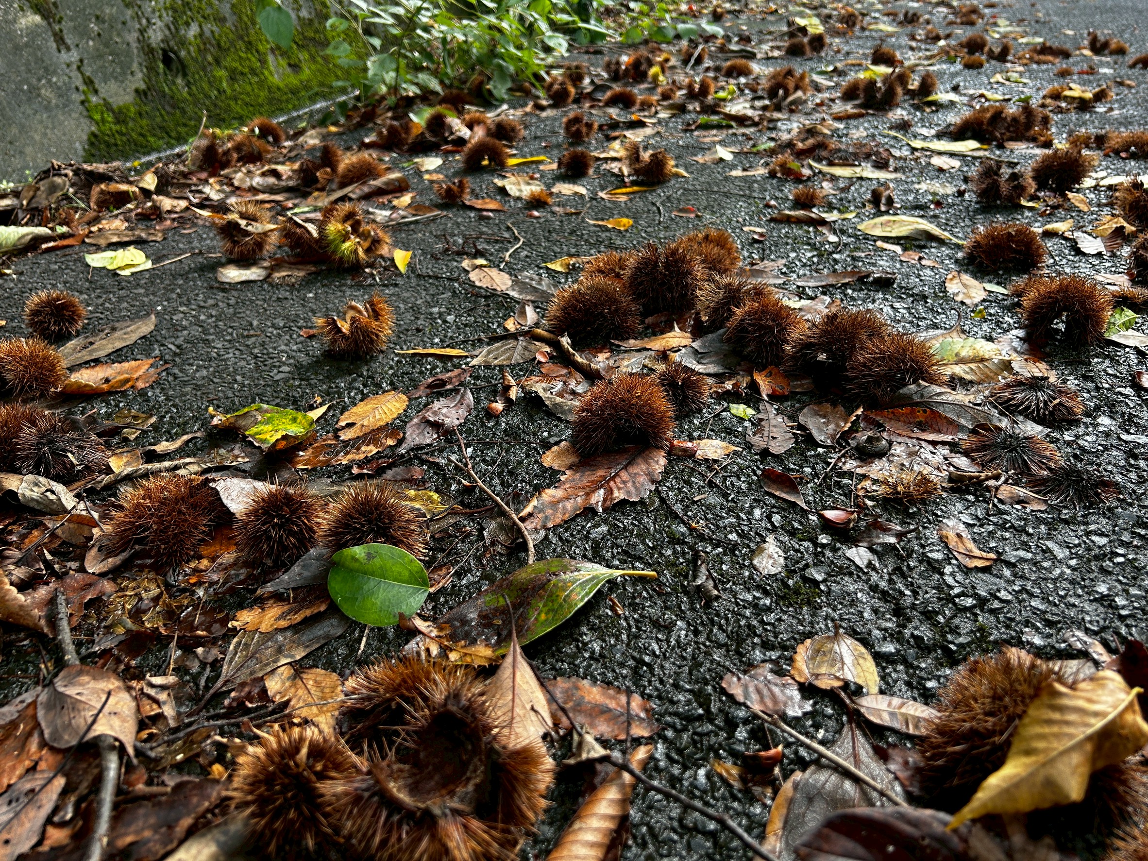妻の実家近くにある栗拾いスポットへ出かけたのですが、すでに野生の動物たちに先を越されてしまい、栗はほとんど残っていませんでした。