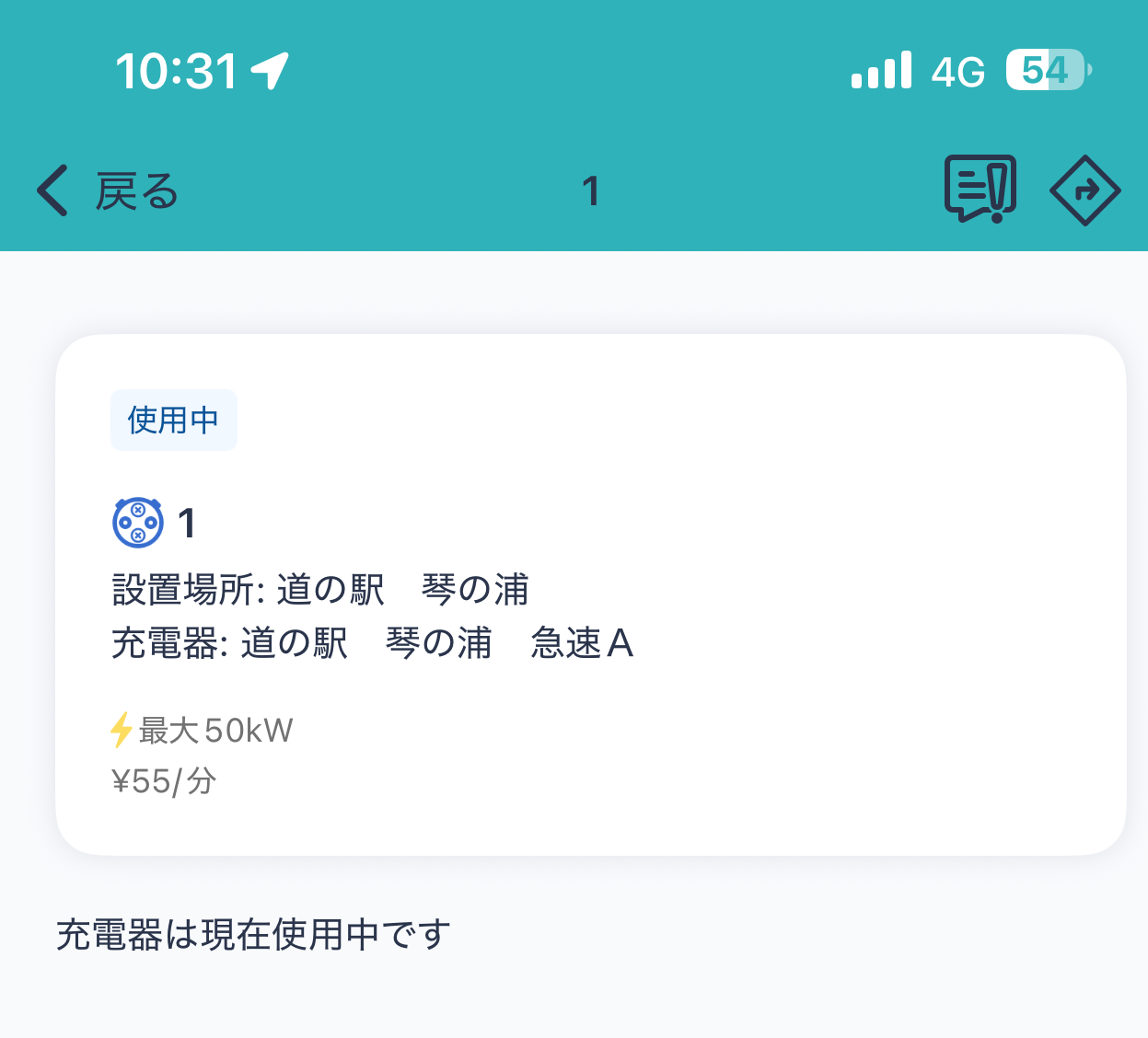 こちらは、道の駅 琴の浦の充電器ですが、e-MOBILITY POWERのアプリで空き状況が確認できます。