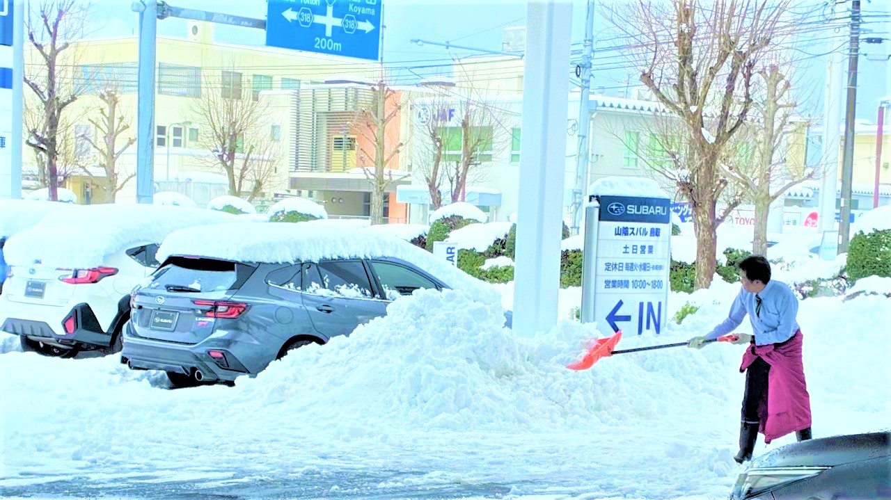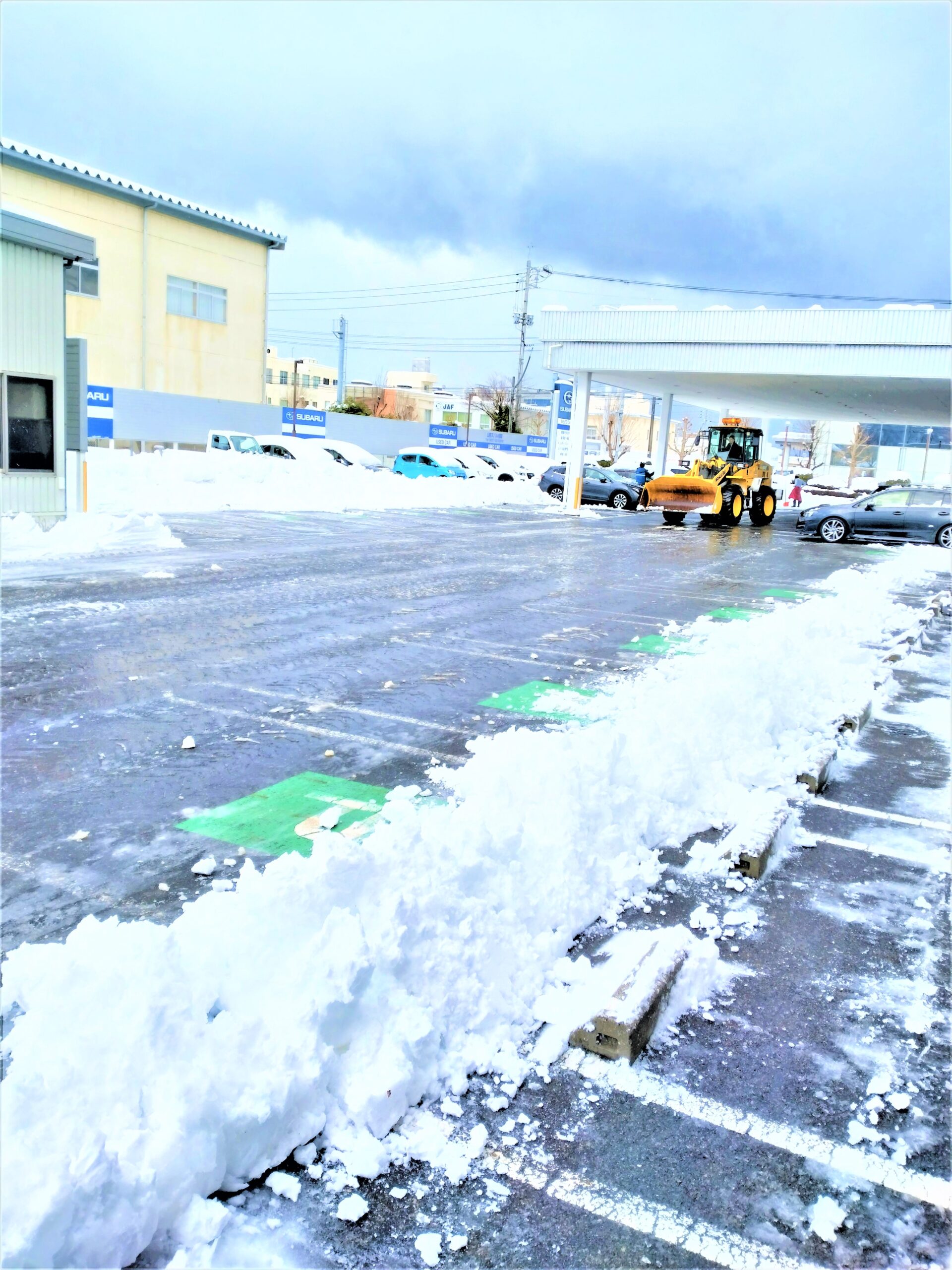 車の屋根の雪下ろしや、機械が入れない箇所はスタッフで除雪しておりますので